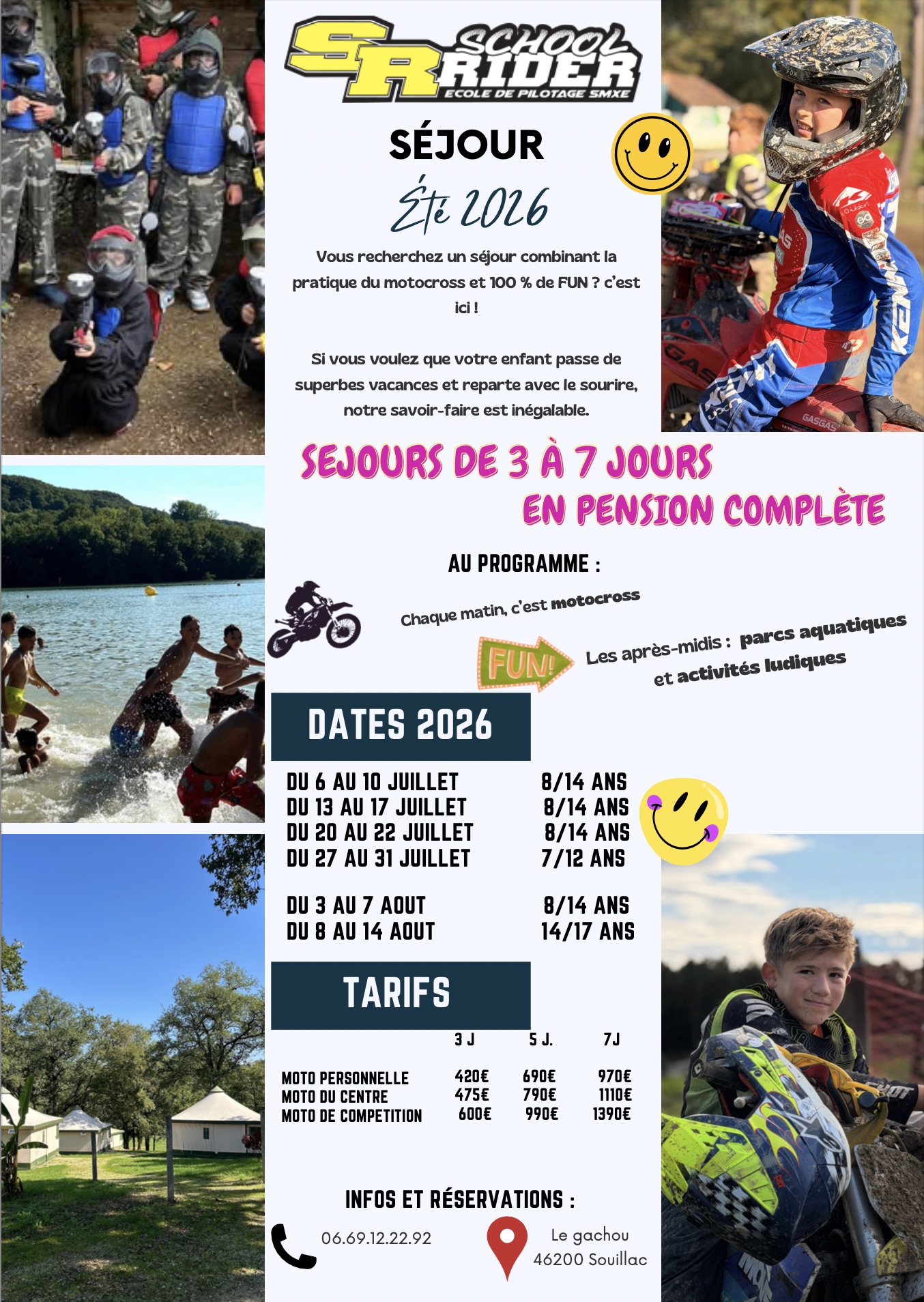 Depuis des années SCHOOL RIDER organise des colonies de vacances moto cross INITIATION / PERFECTIONNEMENT, situé dans notre région du lot au coeur d'un parc de 35 hectares en pleine nature.